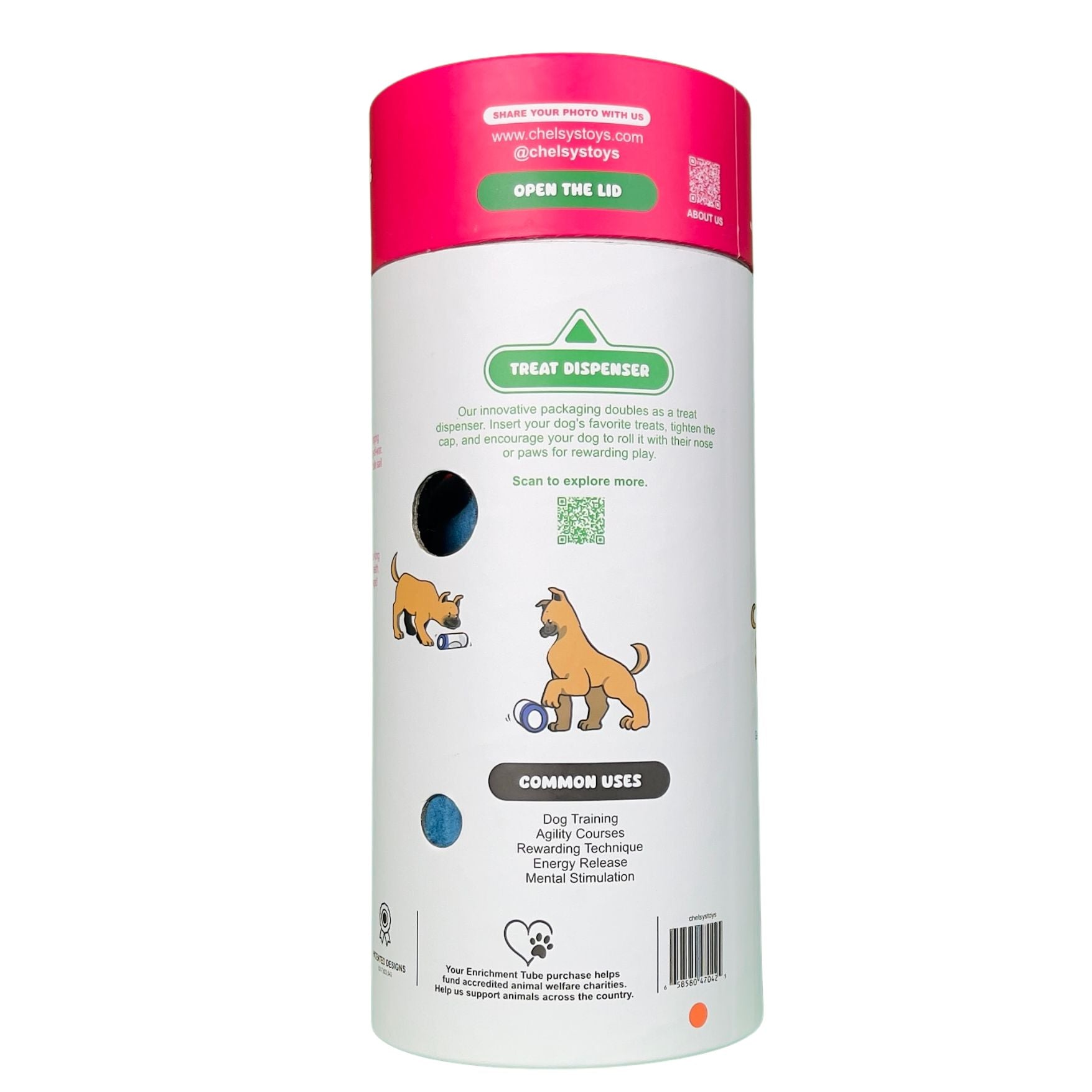 Adjustable Difficulty: Three different hole sizes and a removable inner tube divider control treat release for customized play.